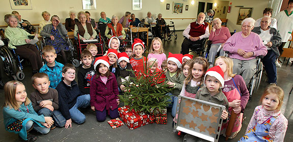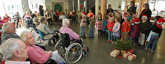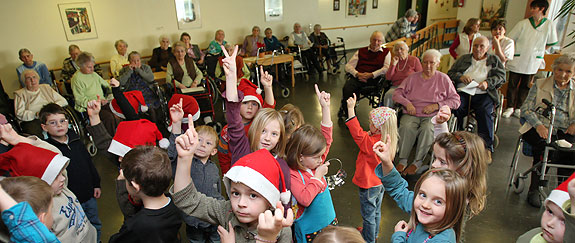Die Erzieherinnen hatten sich mit 17 Kindern auf den Weg gemacht, um den Bewohnern des Altenheimes eine schöne Abwechslung zu bringen. Durch Aufführungen und gemeinsames Singen schenkten sie viel Freude sowie Vorfreude auf gemeinsame Aktionen im kommenden Jahr.
