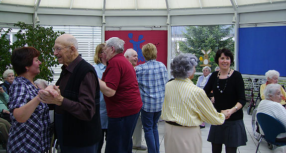 (16.04.2010) Am Mittwoch, 14. April 2010 fand der erste Tanztreff bei uns im Haus statt. Die Tanzbegeisterten fanden sich um 14.30 Uhr im stilvoll dekorierten Pavillon ein und starteten mit dem Eröffnungstanz in den Nachmittag.