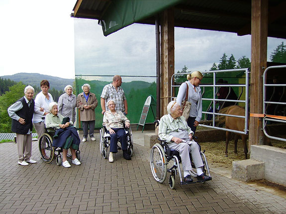 Nach der Stärkung spazierten unsere Bewohner noch Richtung Stall und bewunderten die kleinen Kaninchen, die Ponys, die Kühe und die Esel. Am späten Nachmittag ging es müde aber glücklich wieder nach Hause. Auch Tage später wurde noch von dem gemeinsamen Ausflug geschwärmt.
