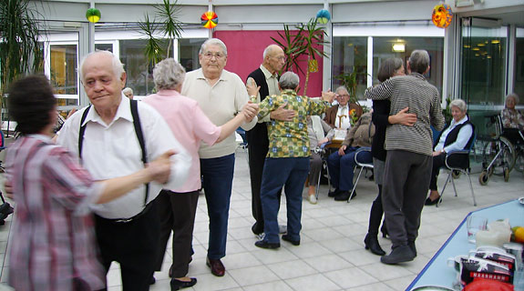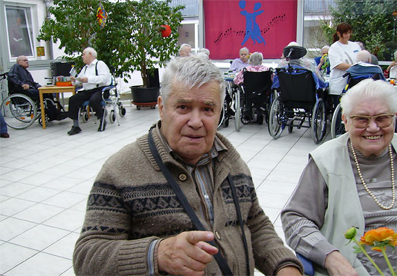 (24.11.2010) Diesmal begann der Tanznachmittag mit einem Geigenspiel unseres Zivis. Zu wunderschönen Klängen wurde entspannt Kuchen gegessen und Kaffee getrunken. Im Anschluss brachte das Zivi-Duo Mathias und Mark wie bereist im September Akkordeon und Gitarre zum klingen.