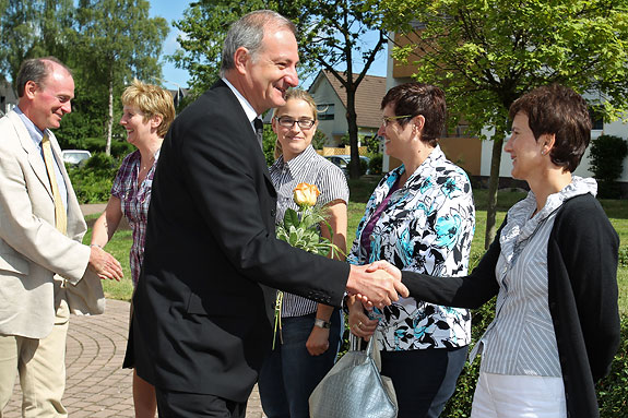 (18.06.2011) Der verewigte Bischof Albert Klein hatte 1976 als erster Bischof unserer Heimatkirche die Landsleute in Drabenderhöhe besucht. Bischof Dr. Christoph Klein nahm regelmäßiger an den Sitzungen des Vorstandes der "Elena Muresanu-Stiftung" teil und war Gast der Siedlung. Weil der jeweilige Bischof der Heimatkirche von Amtswegen Mitglied des Vorstandes ist, nahm an der diesjährigen Sitzung erstmals Bischof Reinhart Guib an den Beratungen teil.
