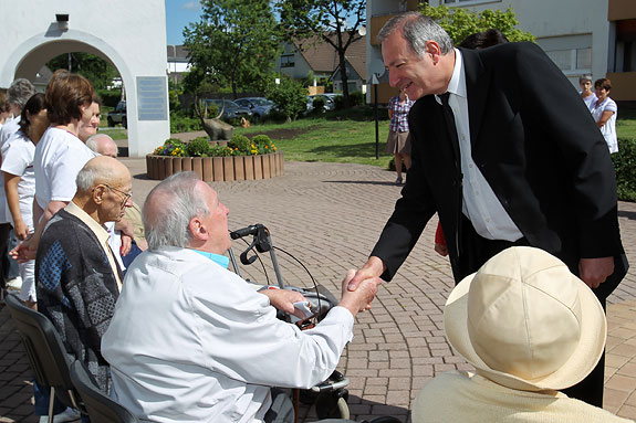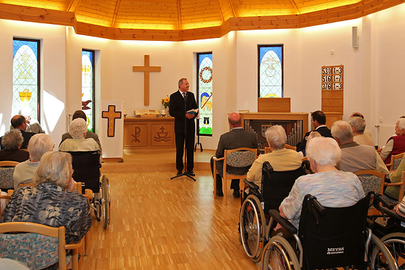 Am Vormittag des 9. Juni hatte Bischof Guib die von Enni Janesch gestaltete Heimatstube und die Einrichtungen des "Haus Siebenbürgen, Alten- und Pflegeheim" besucht. Um 11 Uhr fand in der Kapelle des Hauses die Begrüßung des neuen Bischofs unter der Teilnahme vieler Heimbewohner/innen, Gemeindeglieder und des Ortspfarrer Rüdiger Kapff statt.