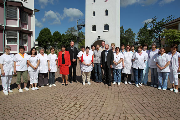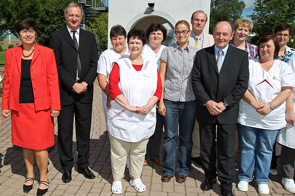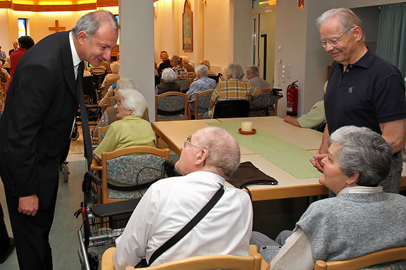 Bischof Guib richtete ein geistliches Wort an das Personal und die Anwesenden und nahm mit den Bewohner/innen das Mittagessen ein. Zu einem gemeinsamen Abendessen mit den Gästen versammelten sich im Saal unter der Kapelle Vertreter des Stiftung, des Kreisverbandes und das Adele Zay Vereins. Die einzelnen Vertretungen stellten sich und ihre vielfältigen Aufgaben vor, und gaben der Hoffnung Ausdruck, dass der neugewählte Bischof auch künftiger Gast in unserer Siedlung sein wird. Kurt Franchy dankte den Mitarbeitern des Alten- und Pflegeheims, die dafür gesorgt hatten, dass sich alle Gäste recht wohl fühlen konnten.