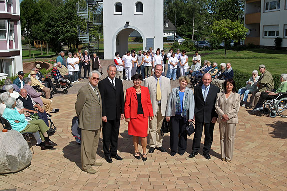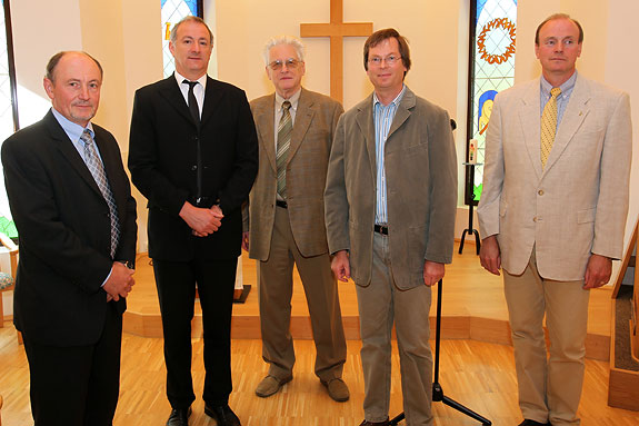 V.l.: Heimleiter Pfr. Friedrich-Michael Barth, Bischof Reinhart Guib, Pfr. i. R. Kurt Franchy, Ortspfarrer Rüdiger Kapff und Hauptanwalt Friedrich Gunesch