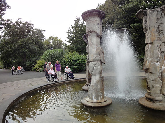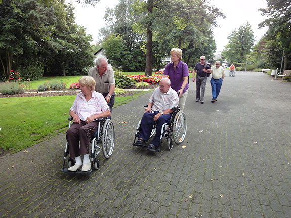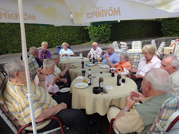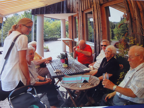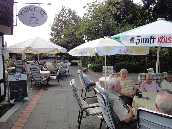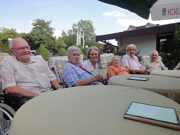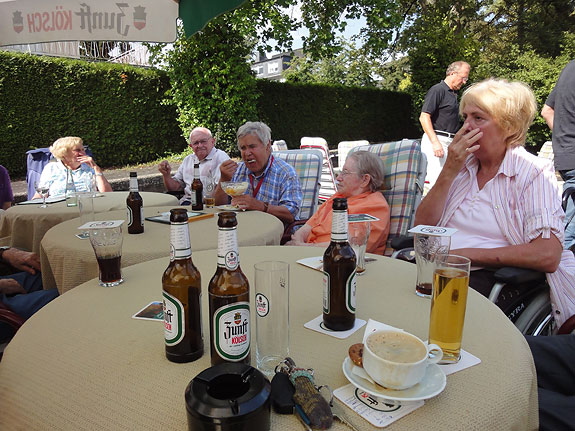 (31.08.2011) Die besten Sommertage haben wir in diesem Jahr für unsere Ausflüge genutzt. Die Lebensgemeinschaft Eichhof und der Kurpark in Nümbrecht waren unsere Ziele. Bei den hohen Temperaturen standen Kaffee und Kuchen nicht hoch im Kurs. Das Kölsch aus heimischer Quelle, Eiskaffee und Eis machten das Rennen. Die Tierliebhaber unter den Ausflüglern kamen auch auf ihre Kosten. Die Tochter einer Mitarbeiterin scheute keine Mühen und besuchte uns mit ihrem irischen Tinker "Bubi".