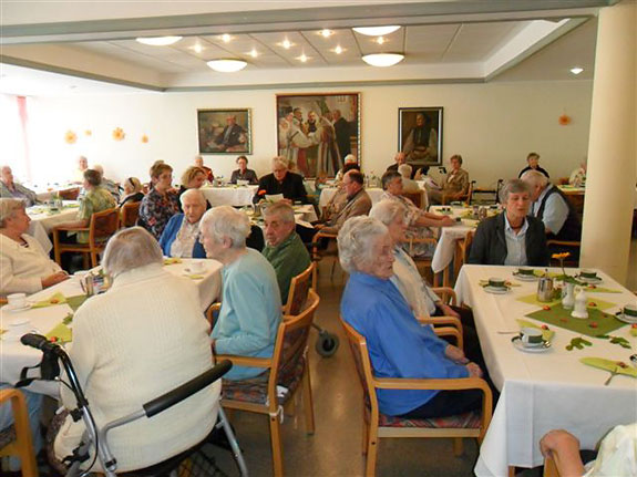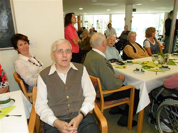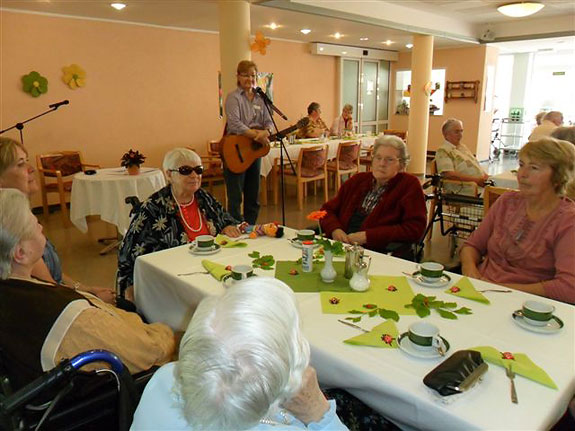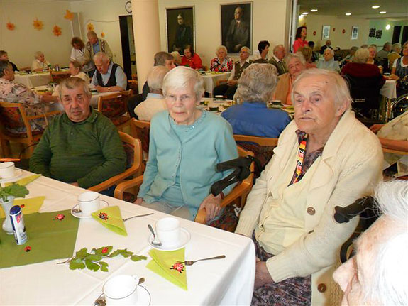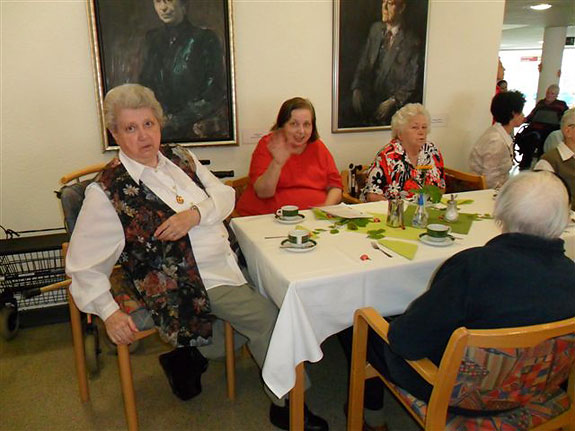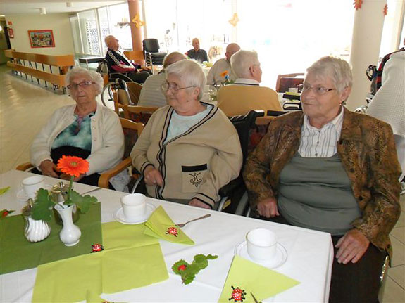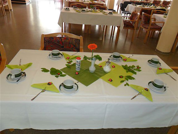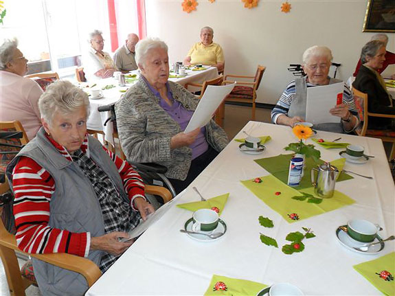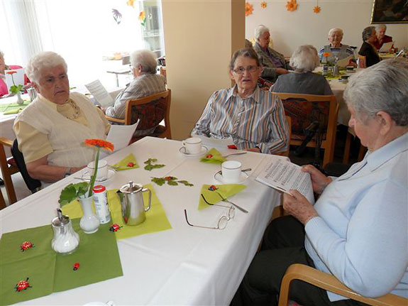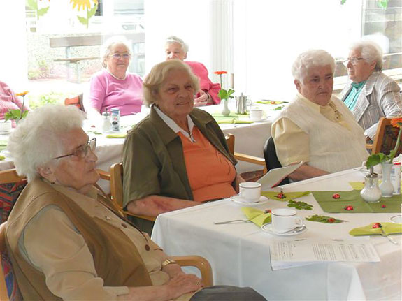 (22.02.2012) Mit grünen Zweigen und Marienkäfern geschmückte Tische empfingen am 15.05.2012 die Bewohner und Gäste unseres Frühlingsfestes. Das diesjährige Programm lief unter dem Motto "Mai" und war genauso bunt und schön, wie der Wonnemonat. Vom fünften Streich von Max und Moritz, bei dem sie Onkel Fritz Marienkäfer ins Bett legen, bis zu Maigedichten und Mailiedern, für jeden war etwas Unterhaltsames dabei.