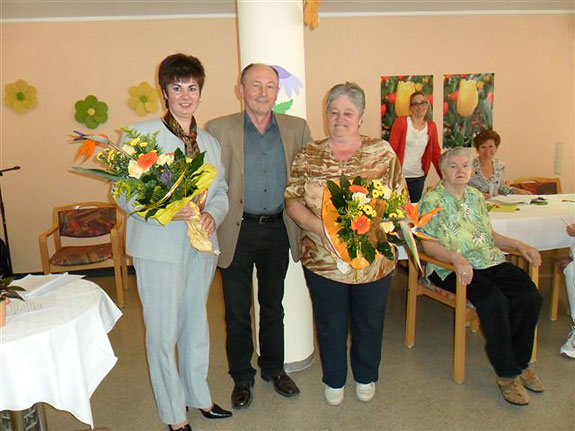 Zwei besondere Ehrungen gab es auch zu Feiern. Frau Gabel wurde zu Ihrem 10jährigen Jubiläum gratuliert, Frau Bretz arbeitet sogar schon 20 Jahre in unserem Haus. Herr Barth überreichte Beiden je einen Blumenstrauß und wünschte ihnen noch weiter viel Schaffenskraft.