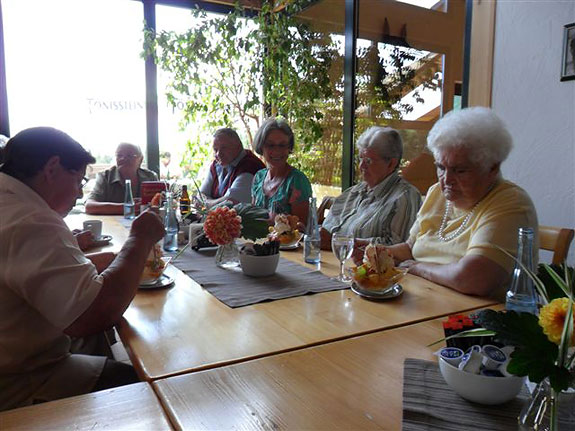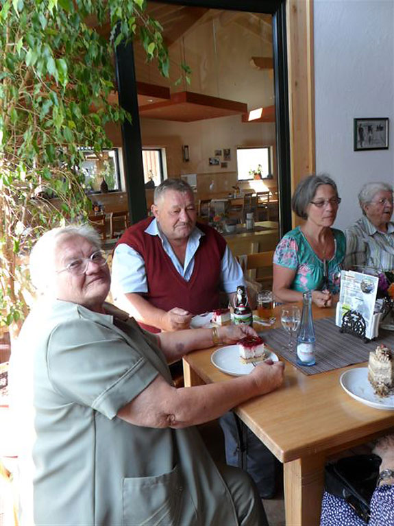 (04.09.2012) Die diesjährigen Bewohnerausflüge führten uns - nachdem die Teilnehmer schon 2010 so begeistert von dem Ziel waren - wieder ins Bauernhofcafé in Hagdorn. Die Auswahl von Torten, Kuchen und Eisbechern war so groß, dass die Entscheidung schwer fiel und manch einer am liebsten alles probiert hätte. Bei sonnigem Wetter verlebten alle einen wunderschönen und unvergesslichen Tag!