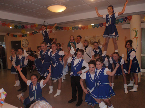 Das Besondere der diesjährigen Karnevalsveranstaltung in unserem Seniorenheim war ganz gewiss die Teilnahme der ältesten über 102-jährigen Bewohnerin und eines kleinen Mädchens, das nach anfänglichem Staunen sich in das Geschehen mitnehmen ließ. Dazu trug die Karnevalstanzgruppe "Crazy boys and girls", unter der Leitung des Trainerehepaares Müller aus Bielstein bei. Mit flotten Tänzen und erstaunlicher Akrobatik riefen sie Begeisterung hervor. Viel Applaus belohnte und motivierte sie im nächsten Jahr wieder zu kommen. Das ganze Geschehen wurde vom wachsamen Auge des Elferrates, der in prächtigen ägyptischen Gewändern aufgetreten war, beobachtet. Leider war er krankheitsbedingt nicht vollständig erschienen, so dass es nur ein Sechserrat war, der auf seine Weise zur Heiterkeit beigetragen hat.