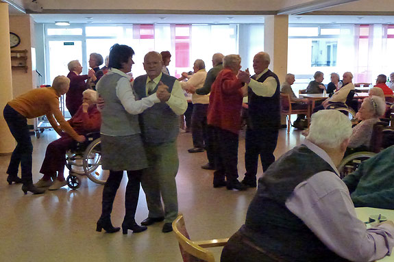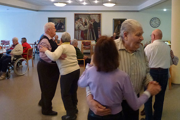 (08.03.2013) Der erste "Tanztreff" dieses Jahres wurde von den Bewohnerinnen und Bewohnern des Hauses Siebenbürgen-Drabenderhöhe mit Spannung und viel Vorfreude erwartet. Diejenigen, die schon im vergangenen Jahr als Stammgäste regelmäßig an den monatlich stattfindenden "Tanztreffs" das Tanzbein geschwungen, und zwischendurch wohl so manche Erinnerung aus bewegter Jugendzeit ausgetauscht hatten, schwärmten buchstäblich bei jeder Gelegenheit von diesem besonderen Event.