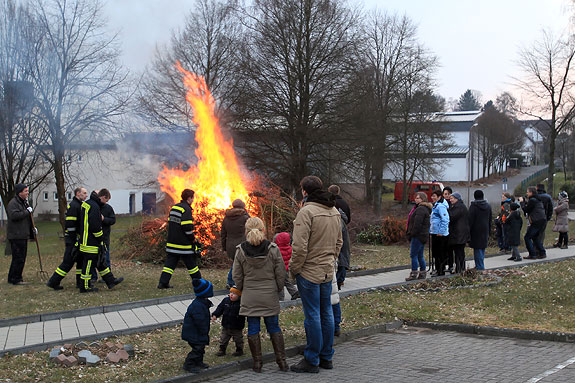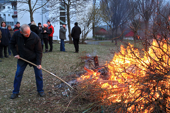 Auch zum Besuch des Osterfeuers am Ostersamstag mussten sich die zahlreichen Besucher warm anziehen. Der Begeisterung taten die niedrigen Temperaturen jedoch keinen Abbruch.