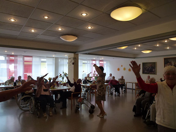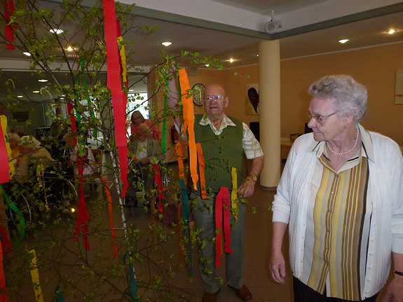 (01.05.2013) Unser monatlicher Tanztreff fiel dieses Mal genau auf den 30. April. Das nahmen wir zum Anlass eine schöne Birke unter Mithilfe unserer Bewohner mit bunten Bändern zu schmücken und "in den Mai" zu tanzen.
