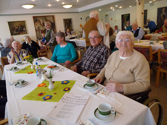 Eine kurzweilige Sketch-Einlage von Frau Menzel und Frau Thomke fand großen Anklang und brachte viel Beifall. Unter der Leitung von Frau Elke Schmidt wurde bis 17:00 Uhr kräftig gesungen und gefeiert.