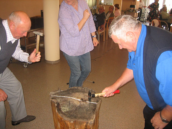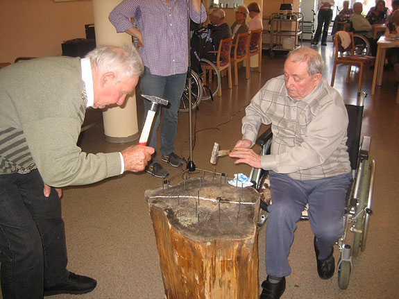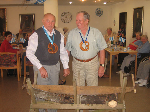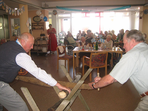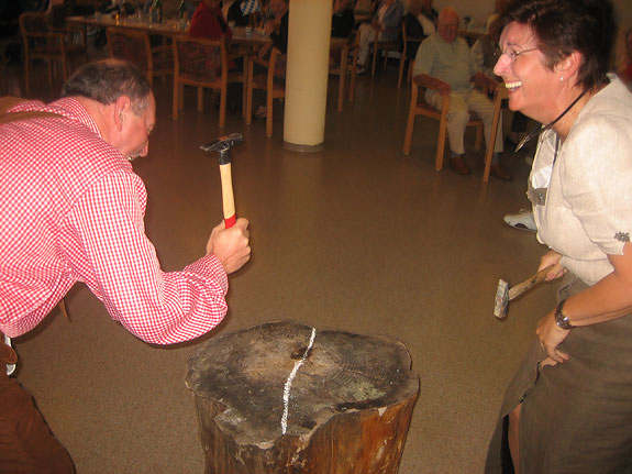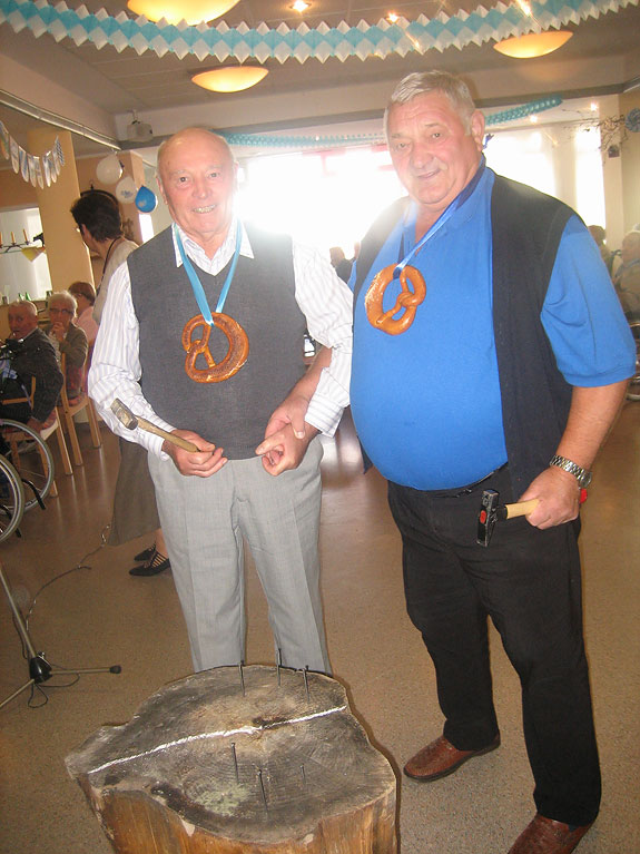 Nach diesem gemütlichen Teil ging es weiter mit einigen Aufgaben, die Konzentration forderten und gleichzeitig für vollen Spaß sorgten. Die Nägel sausten nur so in den dicken Holzklotz und beim Holzsägen hätte man für einen guten Wintervorrat sorgen können. Andere freuten sich, dass sie nach der Feier ein Jodeldiplom nach Haus tragen konnten und wie immer war die Zeit zum Tanzen viel zu kurz. Durch das Programm führte gekonnt Elke Schmidt. Wir freuen uns auf nächstes Jahr, wenn es wieder heißt O 'Zapft ist.