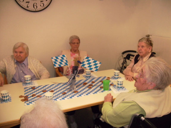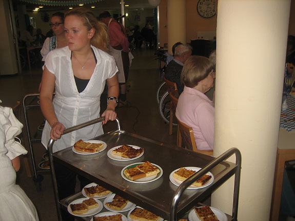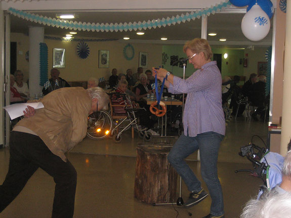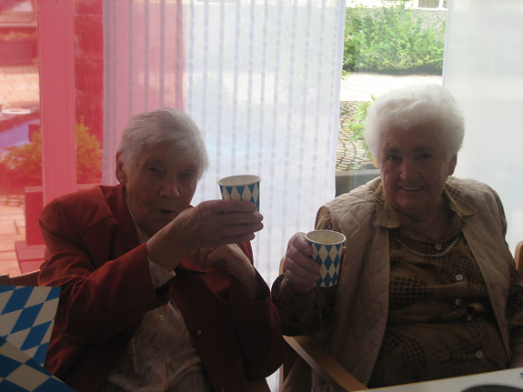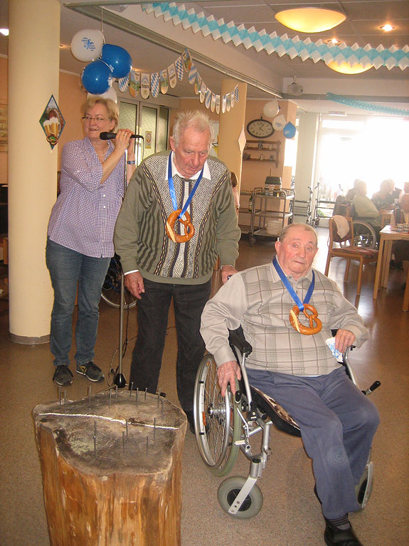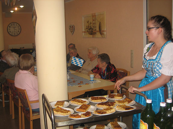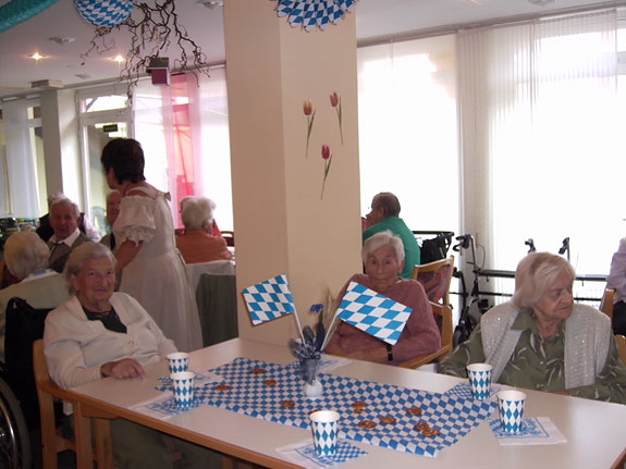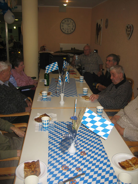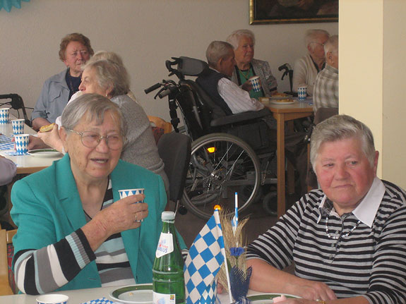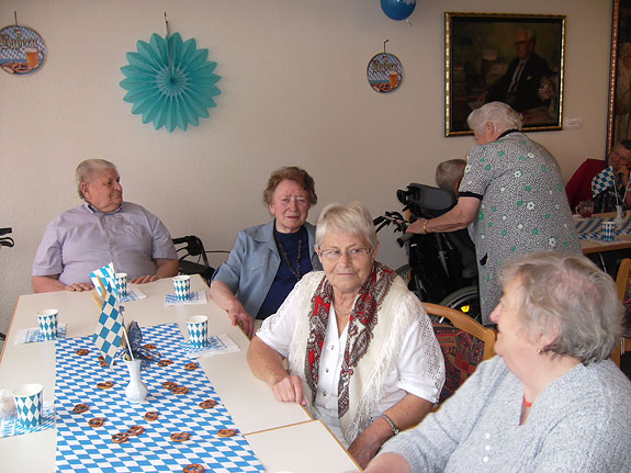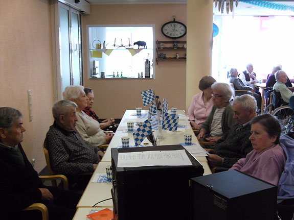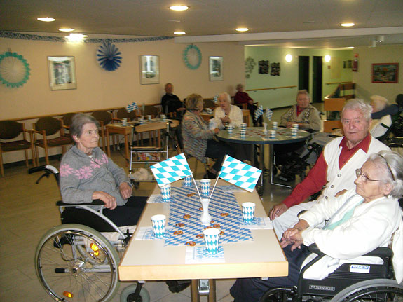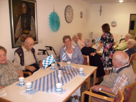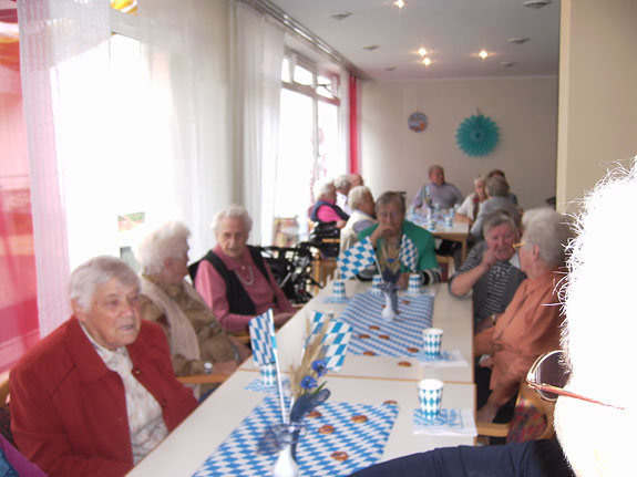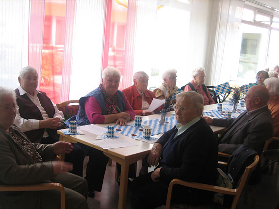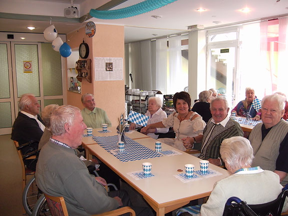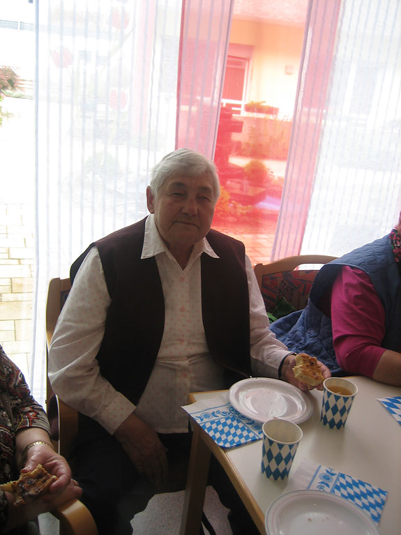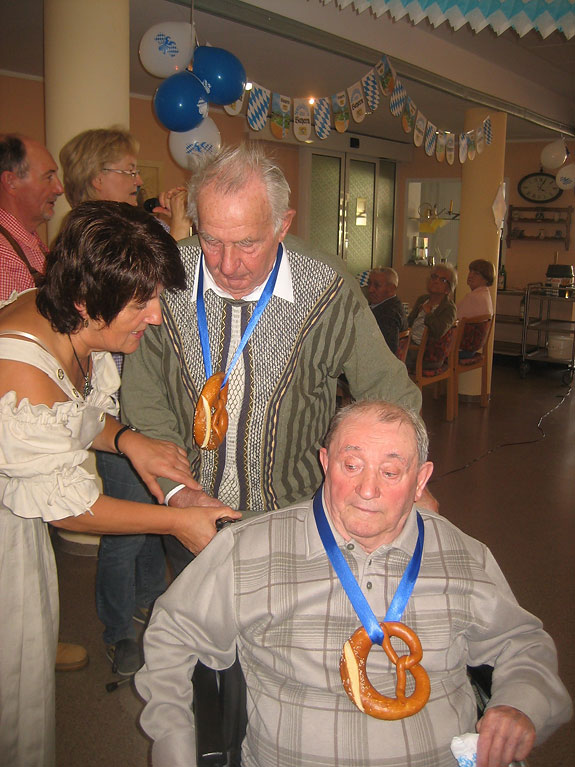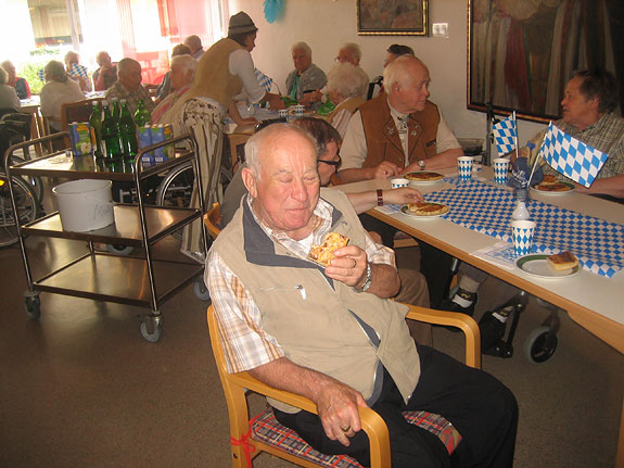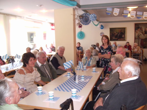 Der Heimleiter, Herr Barth begrüßte alle Anwesenden, Bewohner, Gäste und Angestellte von denen etliche in Tracht erschienen waren. Anschließend überbrachte Herr Franchy, Vorsitzende des Adele-Zay-Vereins Geburtstagsgrüße an alle, die in den vergangenen 3 Monaten Geburtstag hatten. Auch begrüßte er noch einmal alle Neuzugänge. Zwei Mitarbeiterinnen sollten im Anschluss von Herrn Barth zu ihrem 20jährigen und 10jährigen Jubiläum geehrt werden, konnten aber den Termin nicht wahr nehmen. Ihren Blumenstrauß erhielten sie aber trotzdem.