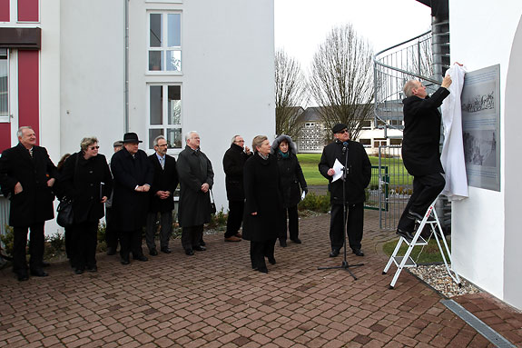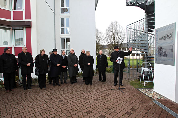 Der Ehrenvorsitzende der Landesgruppe Nordrhein-Westfalen, Harald Janesch, enthüllte die Gedenktafel, an deren Gestaltung er mitgewirkt hatte. Pfarrer i.R. Kurt Franchy erinnerte in seiner Rede daran, dass aus Siebenbürgen rund 75 000 Männer, Frauen, Kinder, Alte und Kranke aus der Heimat evakuiert, vertrieben und in die damalige Sowjetunion verschleppt wurden. „Unter schwersten Bedingungen mussten unsere Landsleute dort fünf Jahre lang Wiedergutmachung von Kriegsschäden leisten. Die Folge sei „tausendfaches Leid“ gewesen. Zahlreiche Dorfbewohner und Ehrengäste nahmen an der Enthüllung der Gedenktafel teil, unter anderem Hagen Jobi, Landrat des Oberbergischen Kreises, der Bischof Reinhart Guib, Oberkirchenrätin Barbara Rudolph, Jürgen Knabe, Superintendent des Kirchenkreises an der Agger, und Wiehls Stellvertretender Bürgermeister Wilfried Bast. Musikalisch umrahmt wurde die Feierstunde vom Blasorchester Siebenbürgen Drabenderhöhe unter der Leitung von Johann Salmen.