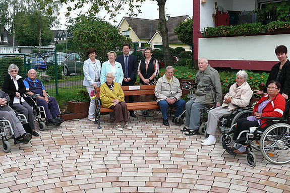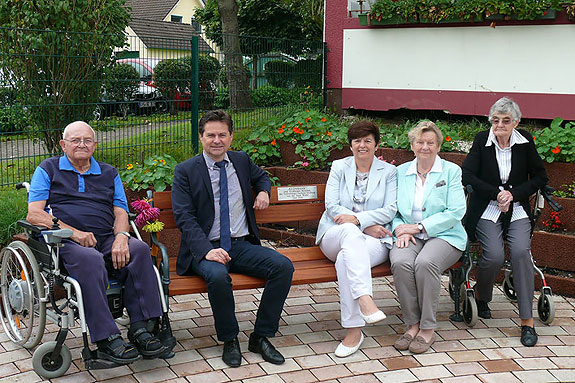 Die Senioren freuten sich über den Besuch des ersten Bürgers der Stadt und weihten mit ihm gemeinsam, der Verwaltungsleitung Brigitte Thomke, sowie der Vorsitzenden des Verbandes der Siebenbürger Sachsen Kreisgruppe Drabenderhöhe Enni Janesch die Bank gerne ein.