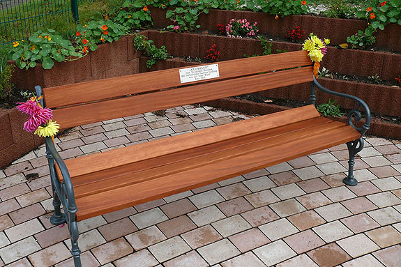 Ein schöner und würdiger Platz in Drabenderhöhe war leicht zu finden. So übergab er am 05.09.2016, die Originalbank, die vor dem Turm der Erinnerung und im Garten des Hauses Siebenbürgen-Drabenderhöhe Alten- und Pflegeheim ihren sonnigen Platz fand.