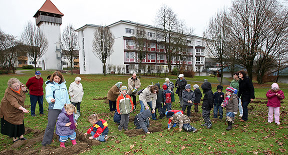 Die Gestaltung des Erlebnis- Sinnesgartens der Begegnung erfolgt in Kooperation mit der angrenzenden Grundschule, den beiden in unmittelbarer Umgebung befindlichen Kindergärten und den örtlichen Vereinen.